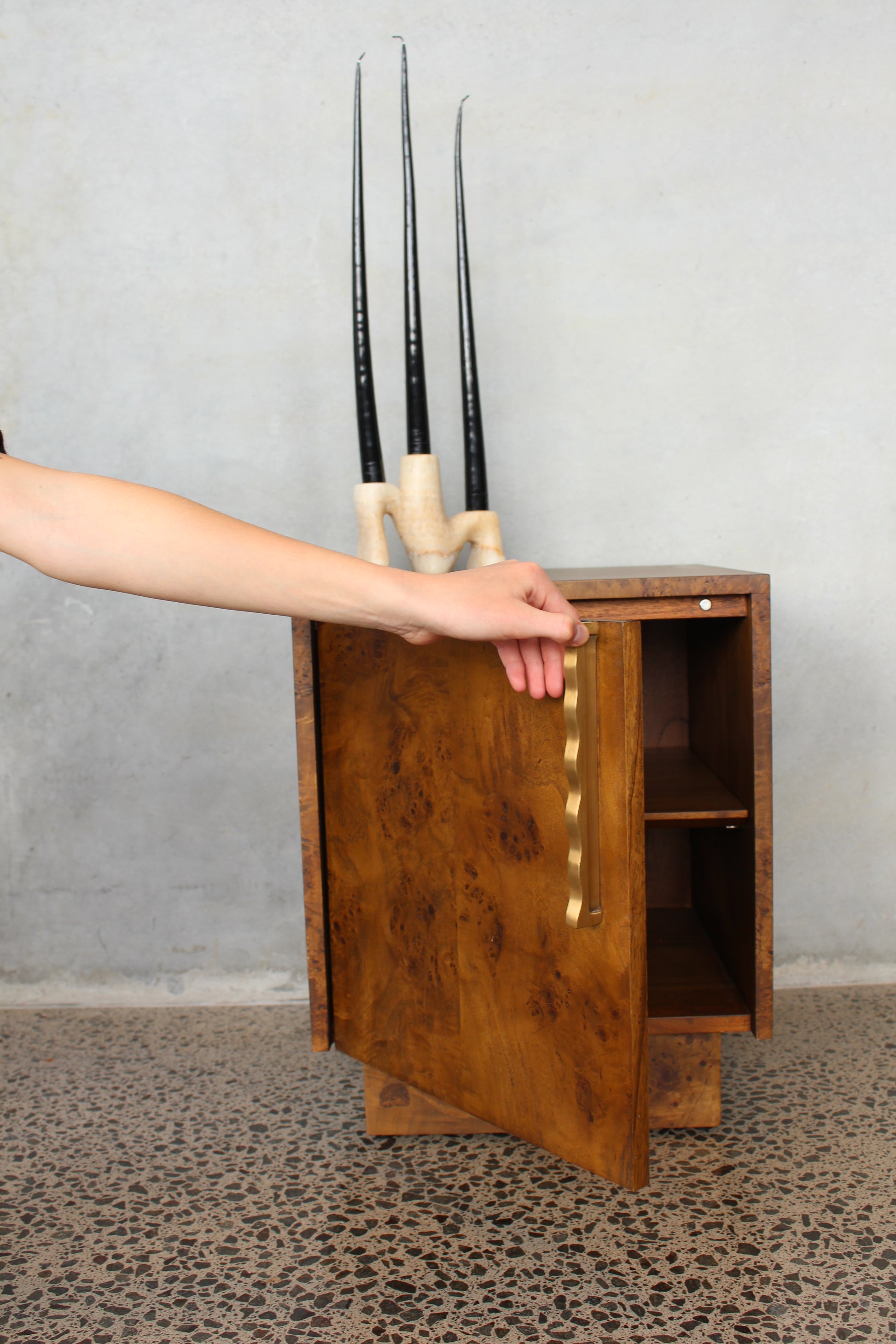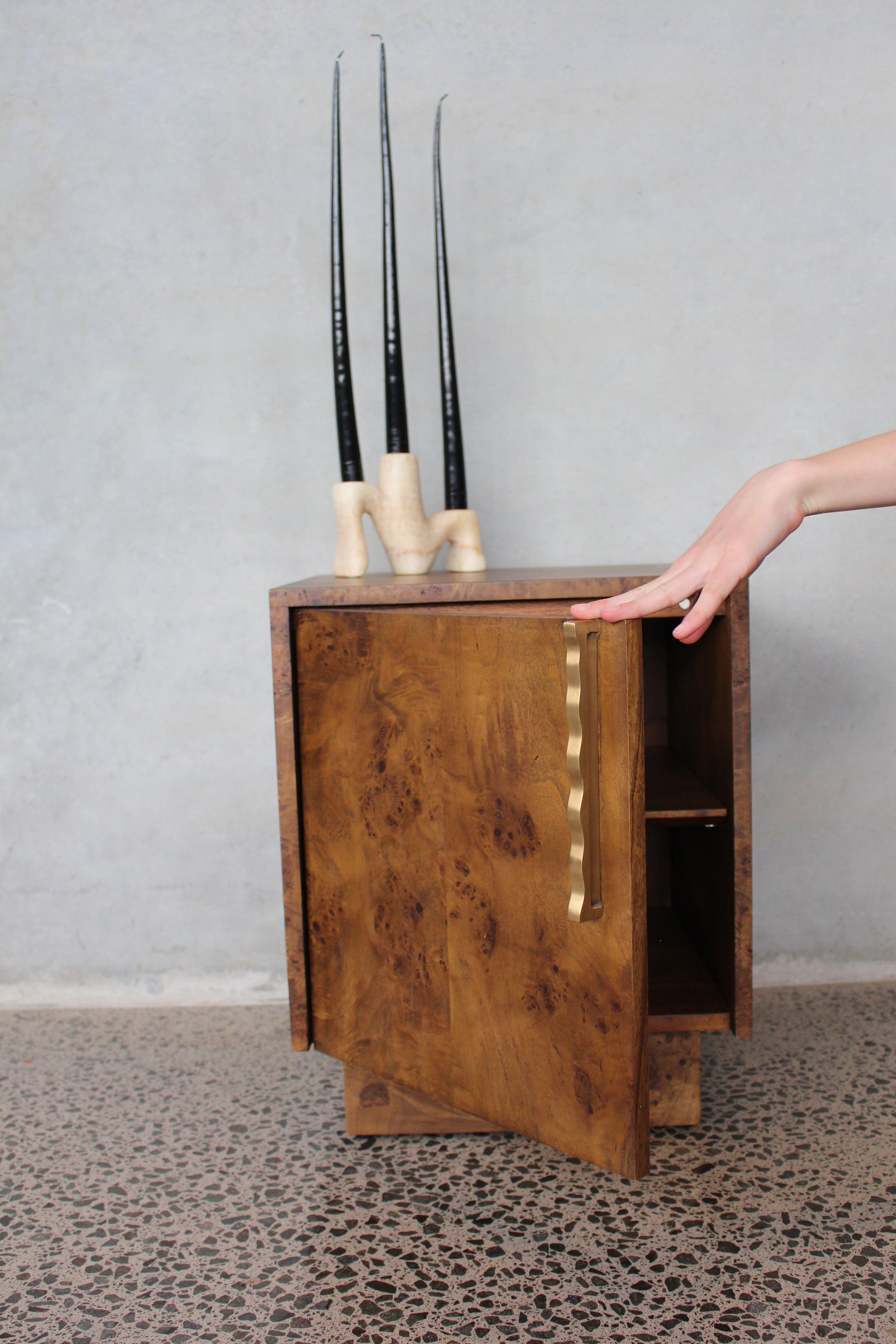 The Baka side table combines expert craftsmanship with elegant design, featuring a midi-sized structure crafted from high-quality wood and finished with a distinctive mappa burl veneer. Its rich wood grain patterns add a sophisticated touch to any living space or bedroom, offering both style and functionality as a bedside or occasional table. Durable and refined, the Baka side table is an excellent choice for those seeking timeless quality and natural beauty in their furniture.