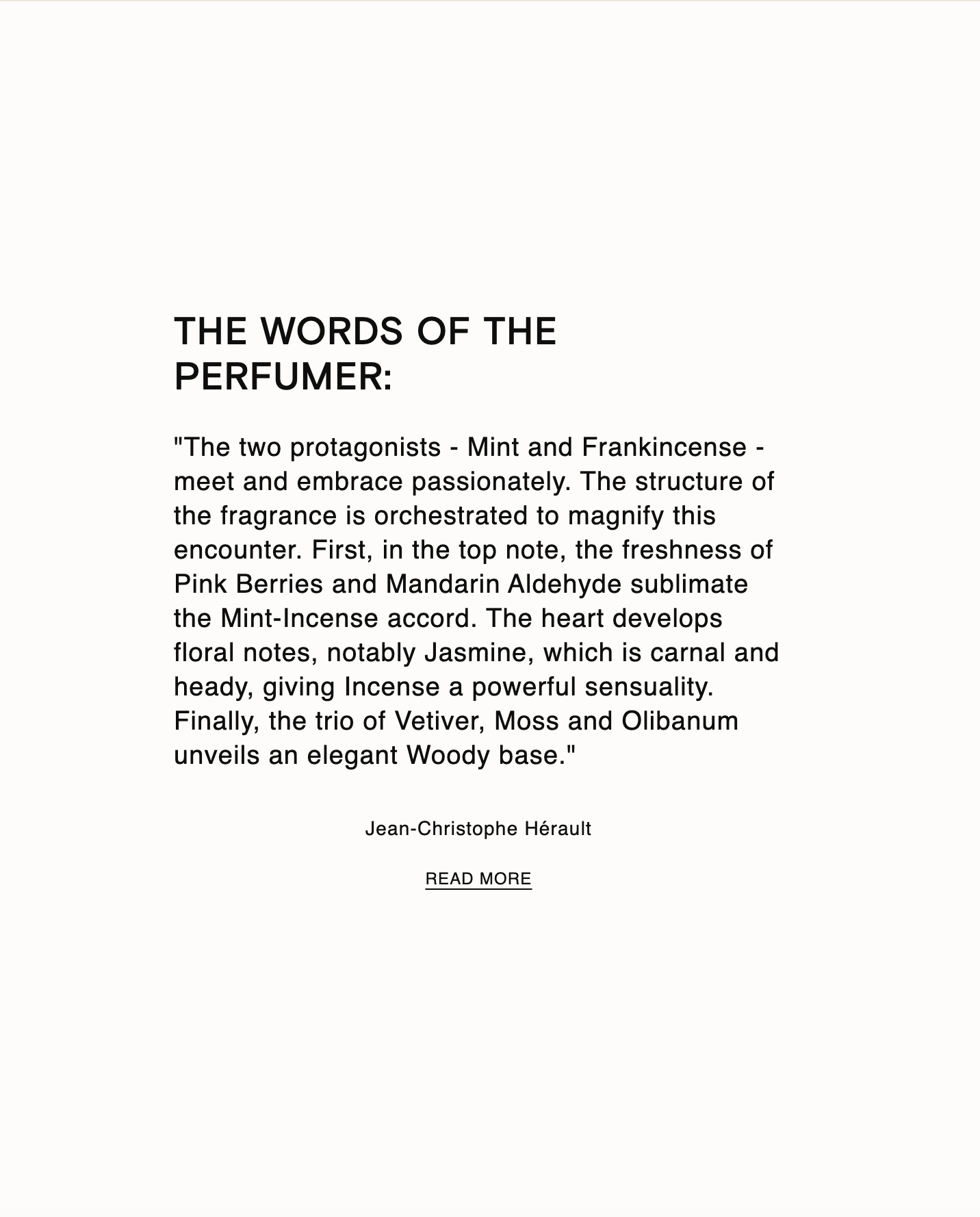 What if visionary love were contained in a bottle? One of those loves that emerge against all odds, growing from concrete once thought barren, endowed with the fierce will of Mint, rising towards a rising sun, becoming as inspiring as the wisps of Frankincense....