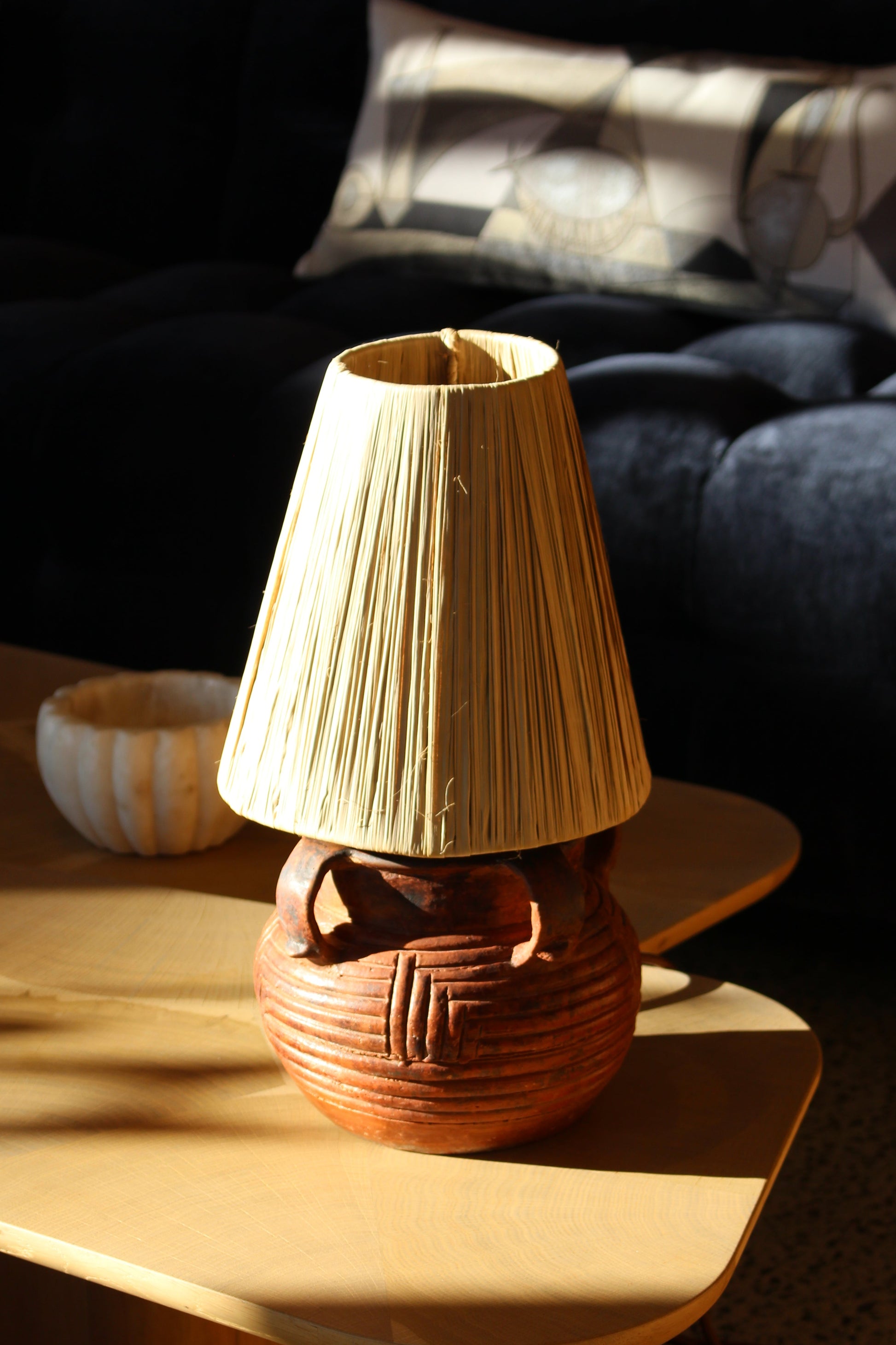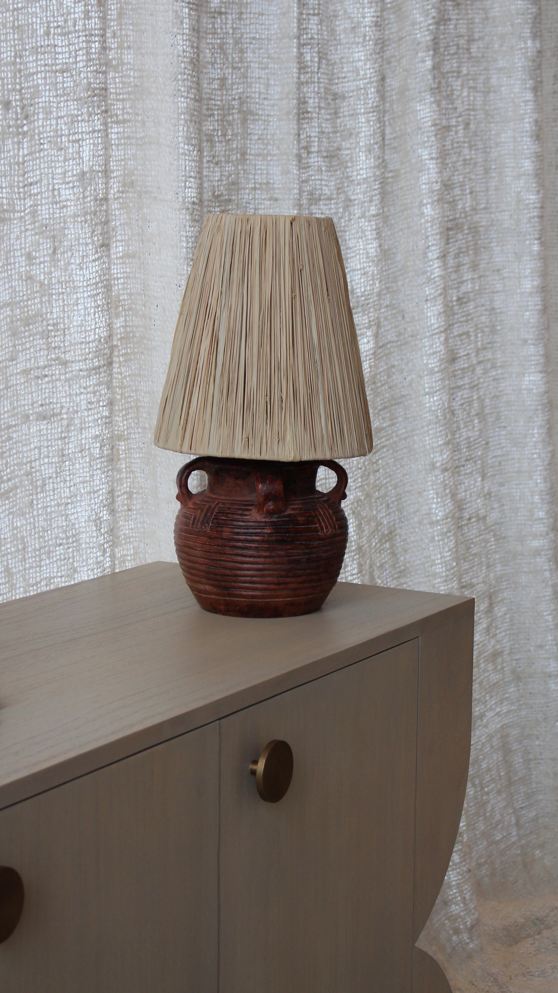 These geometric lamps are crafted from unique terracotta pots, each featuring its own distinct design and shape. Mix and match multiple pieces to create a stunning composition that adds warmth to any space, perfect for decorating sideboards and console tables.
