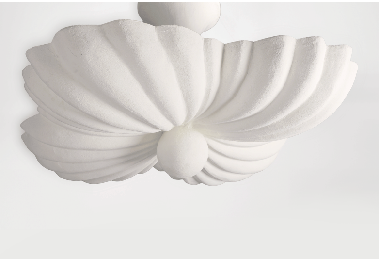 A whimsical bloom suspended in mid-air. This one of a kind hanging light captures the delicate grace of a flower in motion, handcrafted from featherweight fiberglass and plaster. Its sculptural form dances between art and function, casting soft light while commanding attention as a statement piece. Impossibly light, impossibly beautiful.