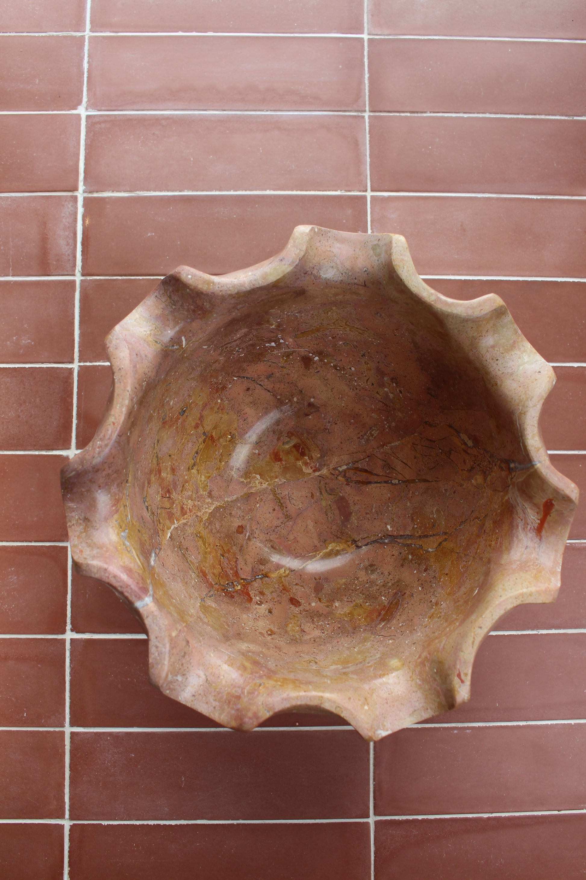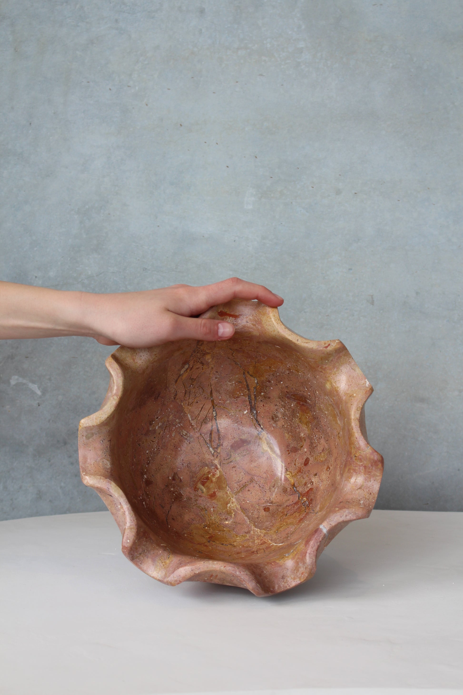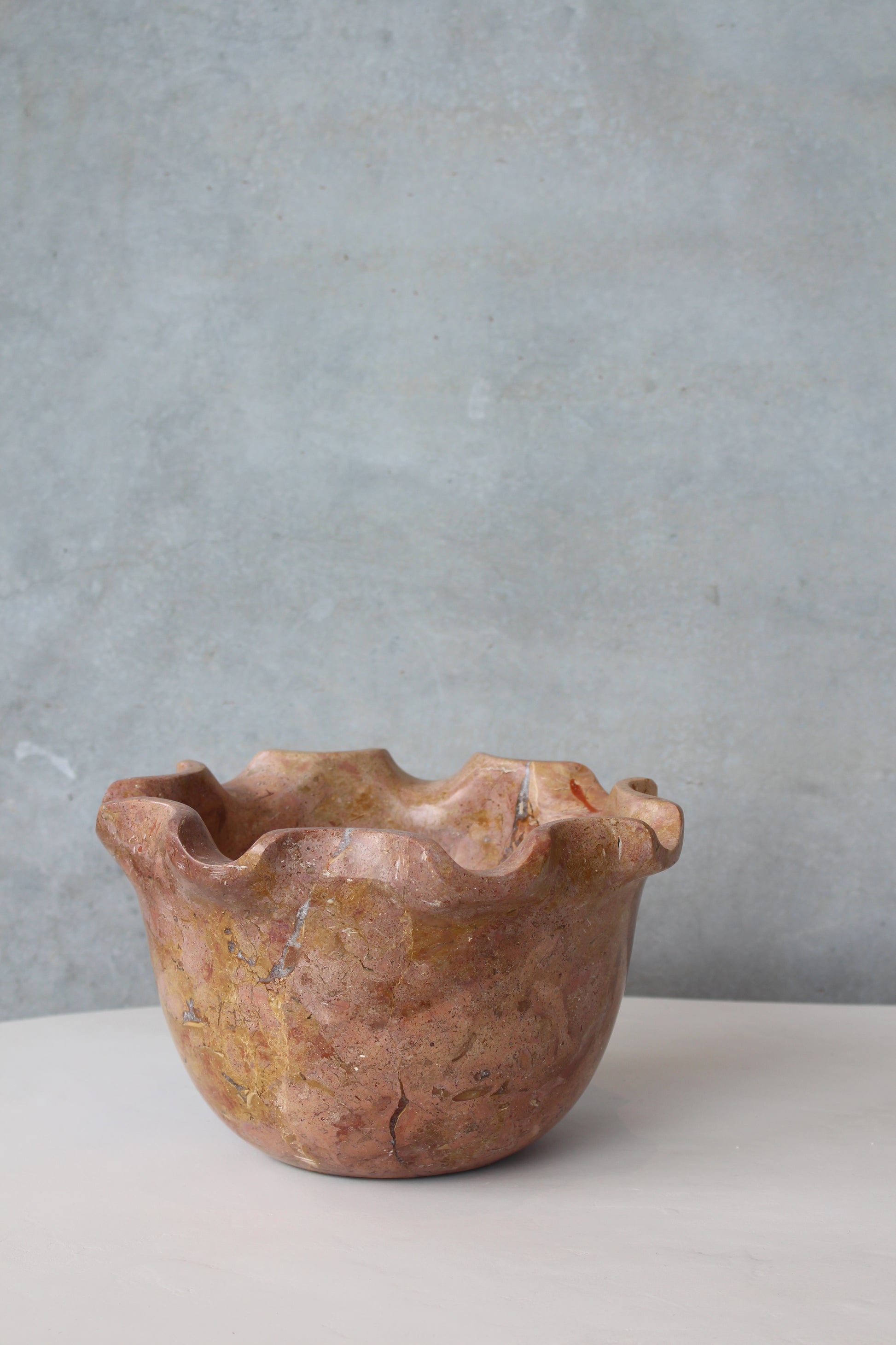 The Roshe bowl features a polished Kali marble finish, expertly crafted into an elegant petal shape. Its smooth surface and refined contours make it a sophisticated centerpiece, ideal for enhancing any interior with a touch of natural luxury. Durable and timeless, this bowl combines artisanal design with premium materials for lasting beauty and functionality.