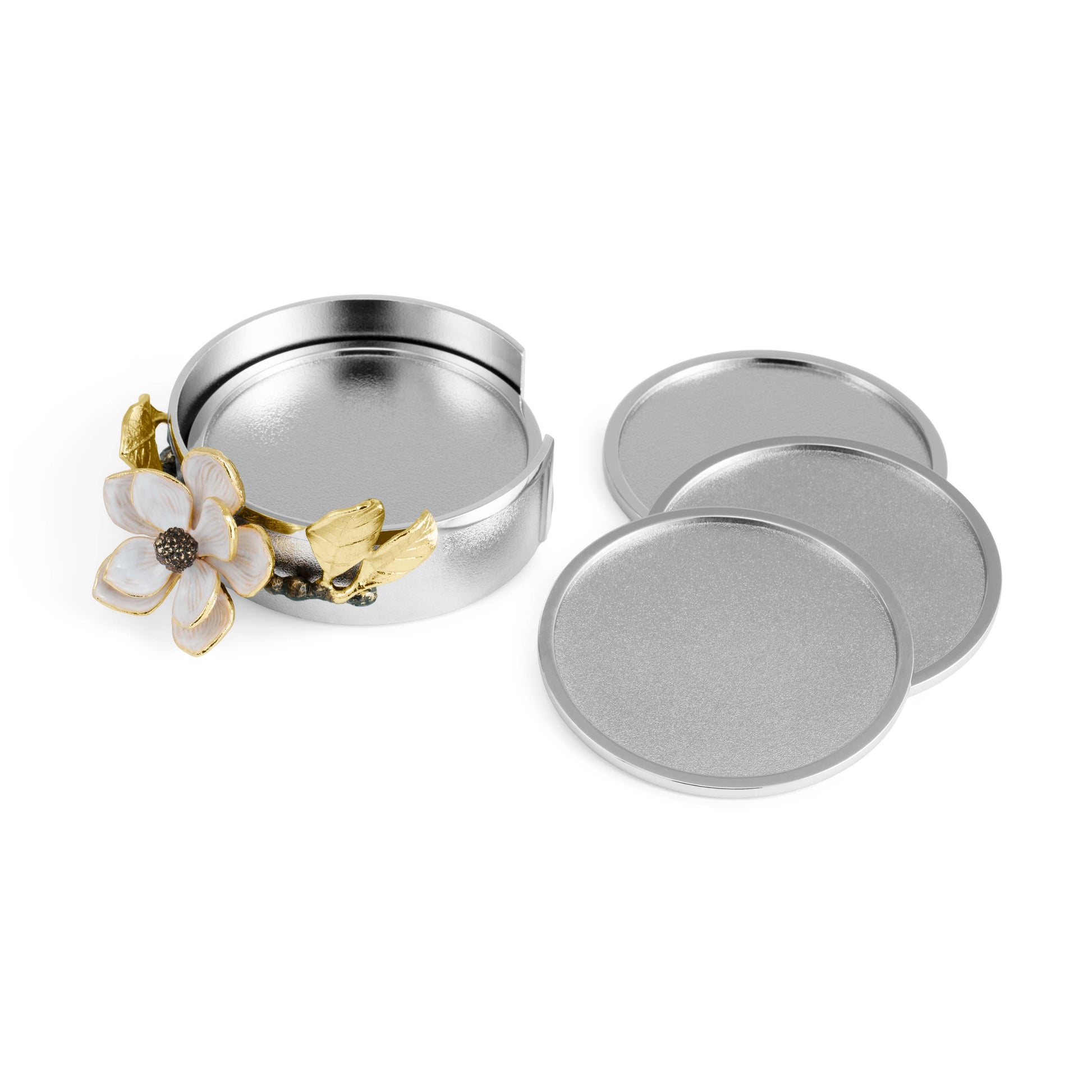 The Vintage Bloom Coaster Set brings 1940s-inspired botanical elegance to your tabletop. Handcrafted with mixed metals and delicate enamel, each piece captures nature’s charm and nostalgic beauty.