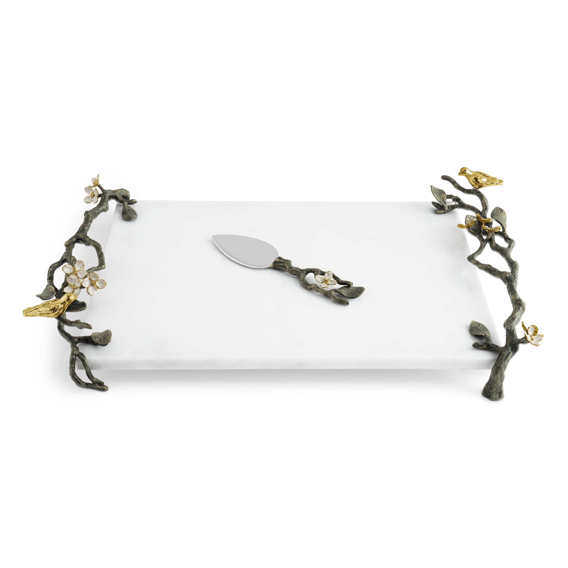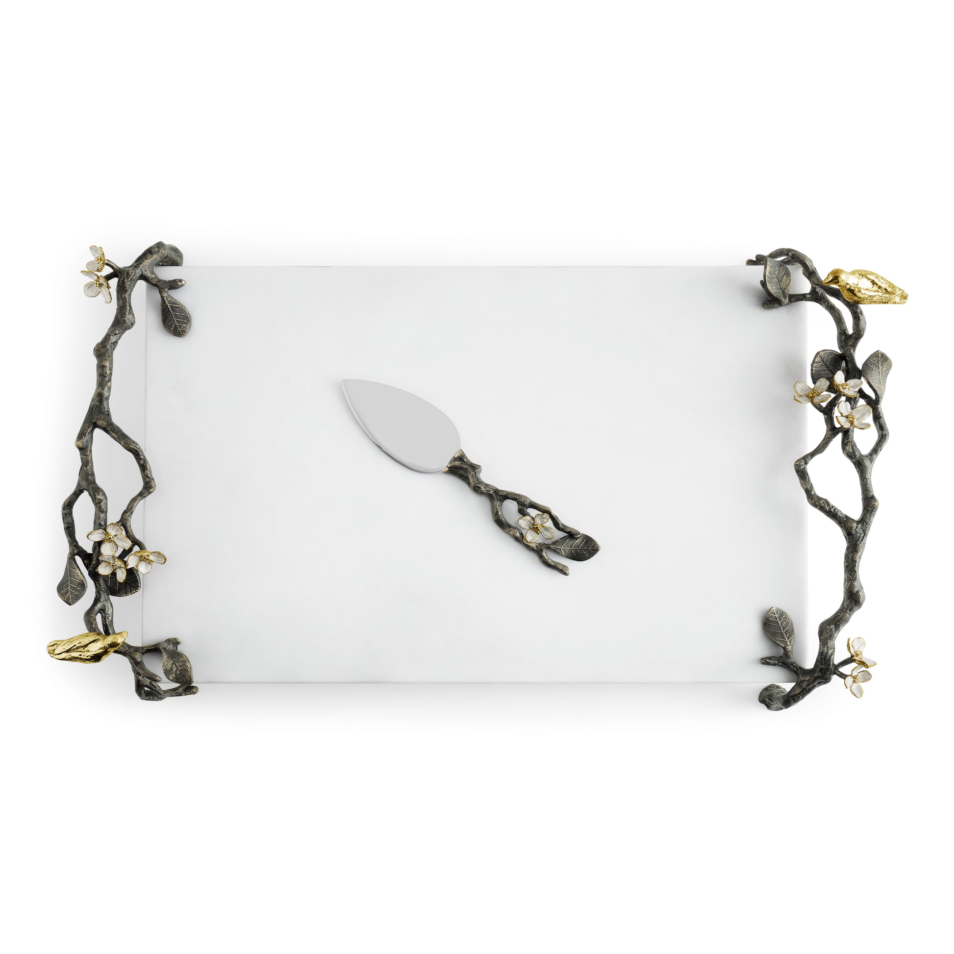 The Lovebirds Cheese Board with Knife embodies love and connection. Handcrafted with sculpted birds and delicate blossoms, it symbolizes devotion, unity, and innocence.