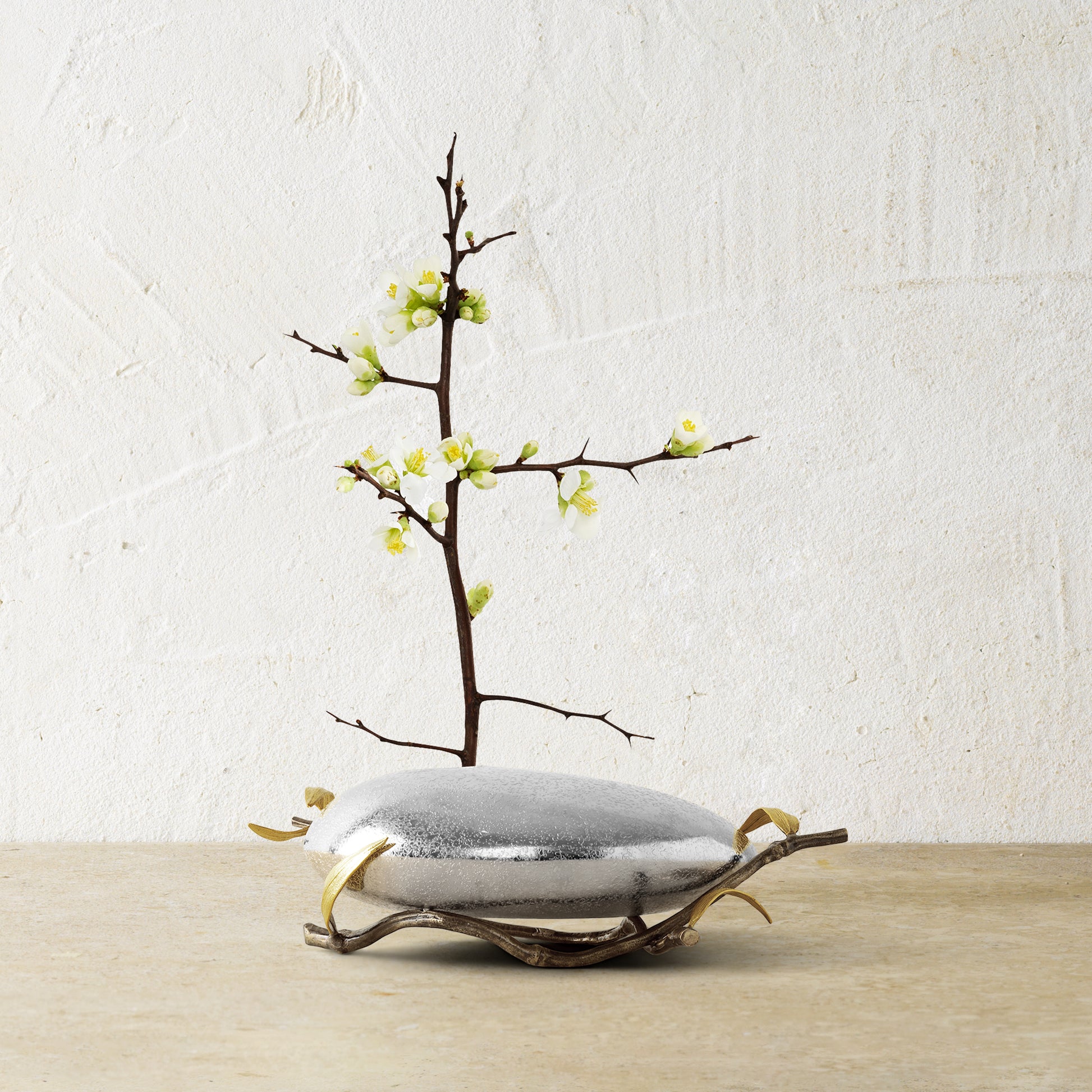 Inspired by the serenity of Japanese Zen gardens, the Ikebana Vase is a study in balance, beauty, and intention. Handcrafted in patinated brass and hand-textured stainless steel, its organic form and built-in flower frog invite quiet moments of floral artistry. Rooted in the Wabi-Sabi philosophy, each piece reflects the soulful elegance of nature’s impermanence—luxurious, contemplative, and deeply human.